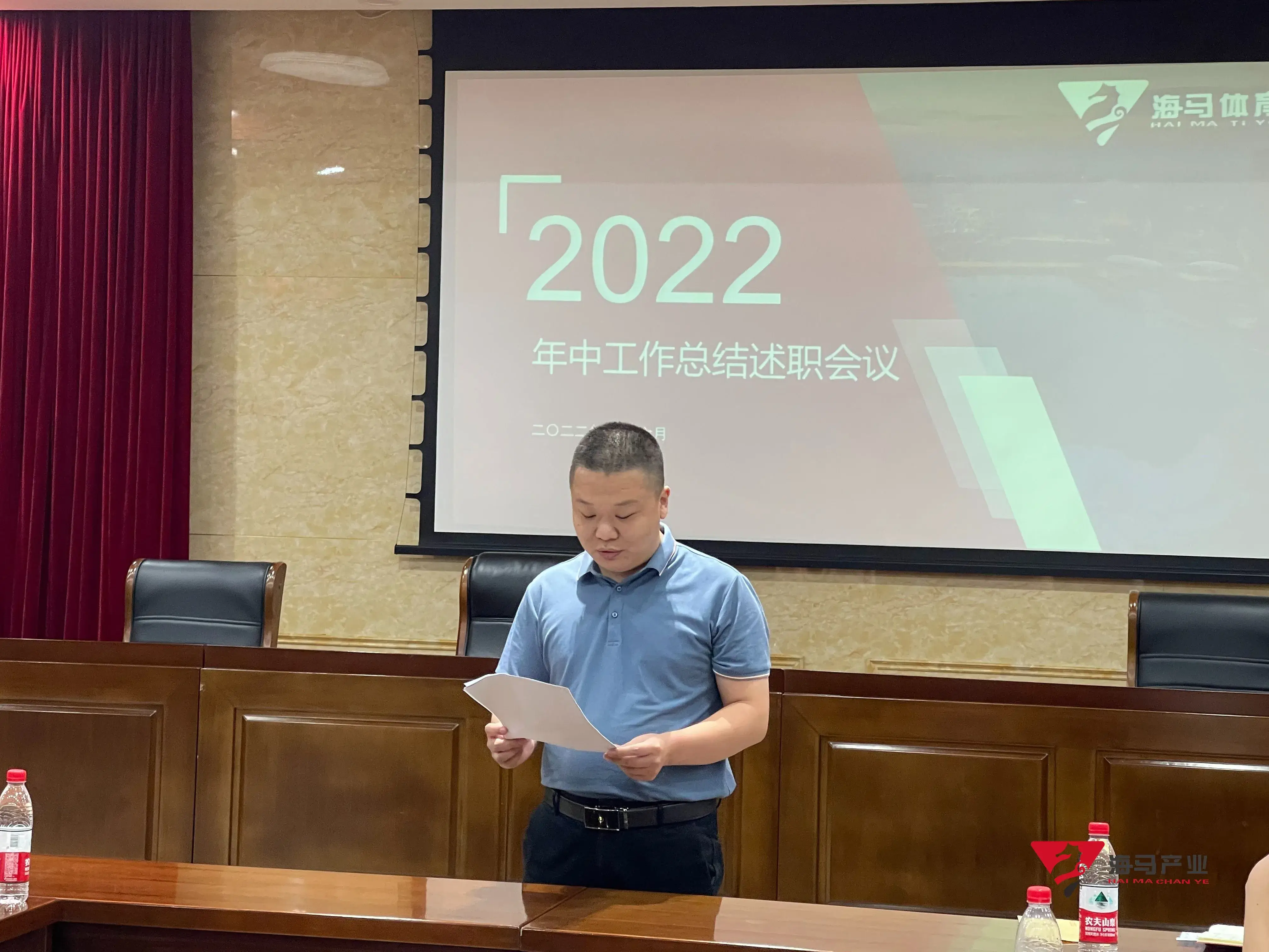 2022年6月29日下午,欧陆娱乐文化产业集团在山东省体育中心二楼会议室召开年中工作总结述职会议,会议对上半年工作成果进行了总结汇报,并就下半年重点工作进行部署。总经理王海民出席了本次会议。会议由综合管理部负责人王永健主持。